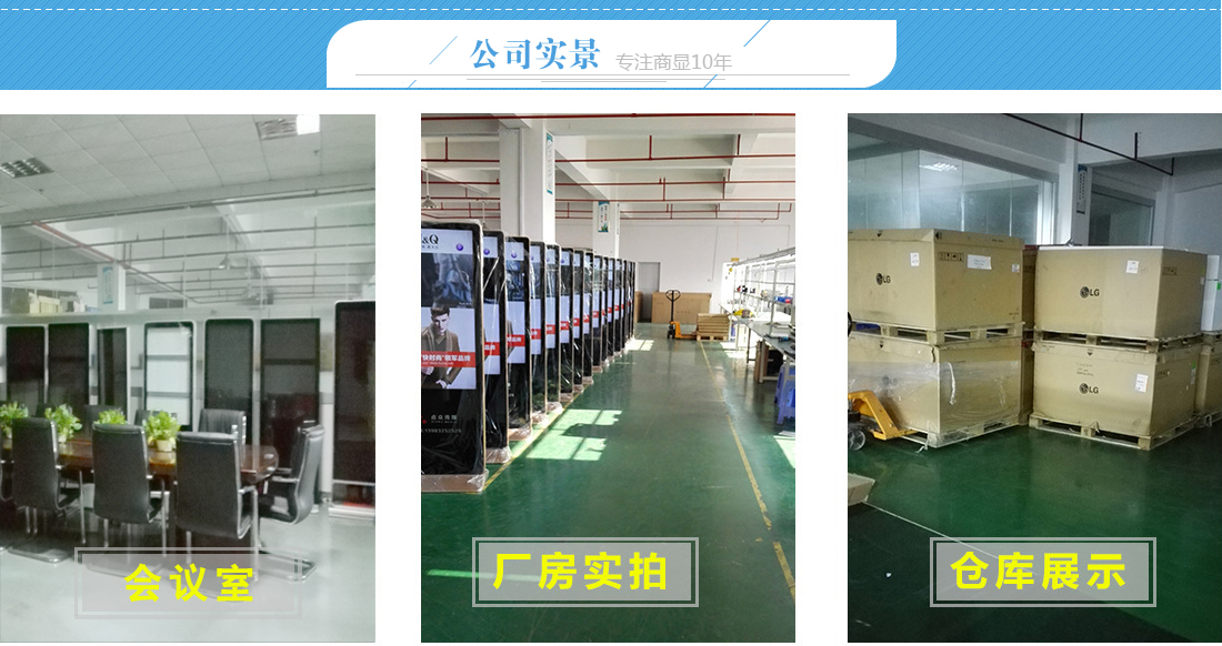 我司还有更多款式:楼宇落地式广告机、楼宇壁挂式广告机、户外广告机、壁挂镜面广告机、落地镜面广告机、落地多屏广告机、壁挂触摸一体机、茶几触摸一体机、落地触摸一体机、车载背挂式广告机、车载前折式广告机、液晶监视器、拼接屏等